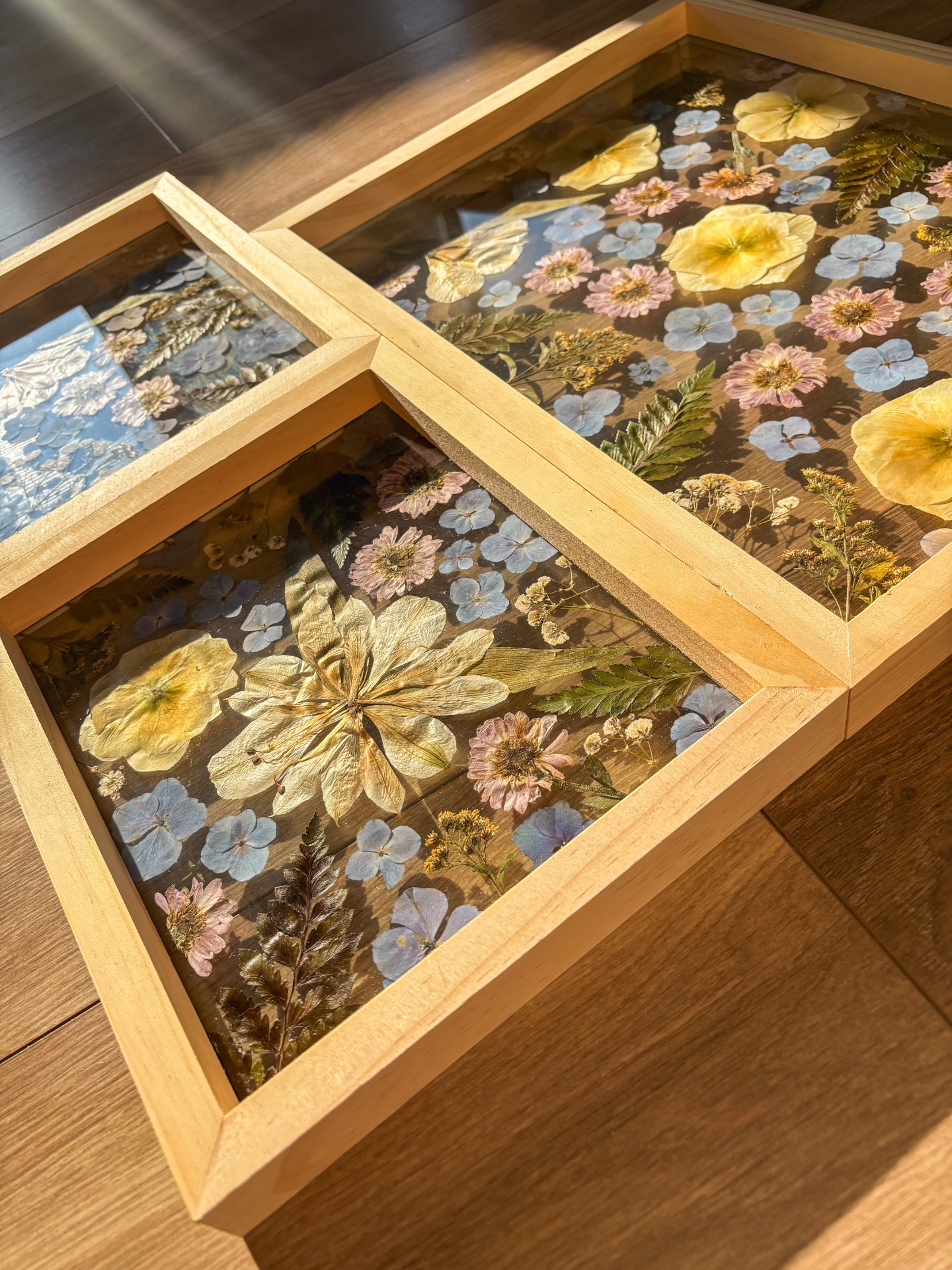Z vylisovaných květů sestavím obraz dle vašeho výběru. Nabízím několik variant rozložení květů v obraze i velikostí a barev rámů.